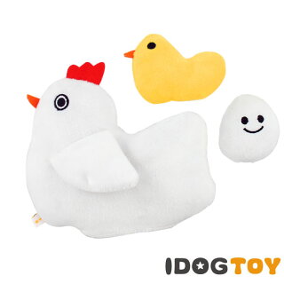 にわとりの親子で愛犬が遊んでいる姿を想像しただけでも楽しくなるとてもかわいい知育玩具です。