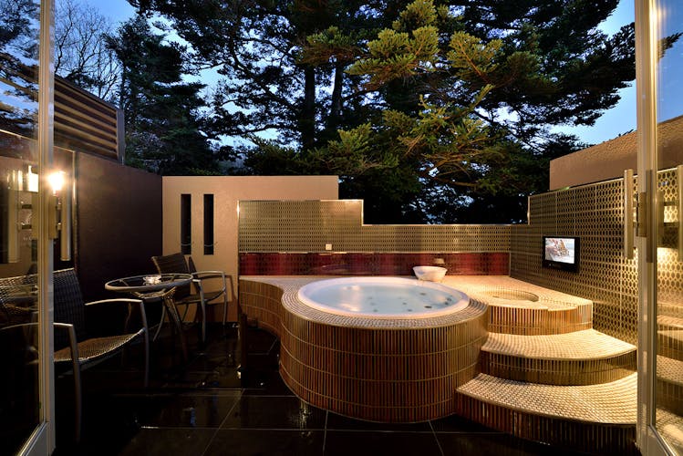 ペットと泊まりたい温泉付き高級宿、次にご紹介するのは、「Dogサバトリーのある宿 ご・遊庭」です。「Dogサバトリーのある宿 ご・遊庭」は南房総の老舗旅館鴨川館が隣接して新しくオープンした、全室露天風呂付きの贅沢なワンちゃん連れ宿です。お部屋は全5室、60㎡以上。「Dogサバトリーのある宿 ご・遊庭」は全室愛犬も遊べるおしゃれなプライベートガーデン付きの贅沢な空間です。